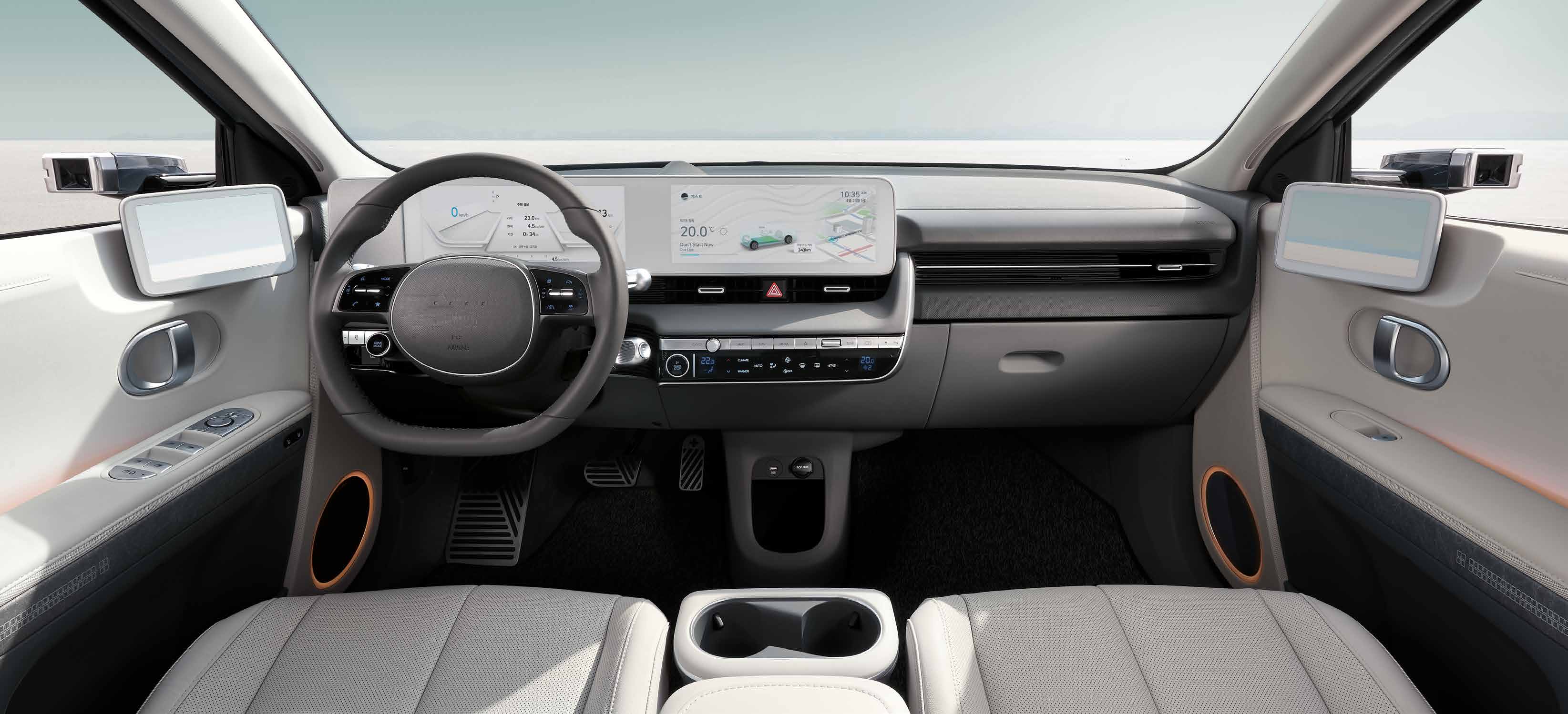 아이오닉5의 실내는 12.3인치 클러스터와 인조가죽 시트로 구성되어 있으며, 고급스러운 분위기를 자아냅니다.