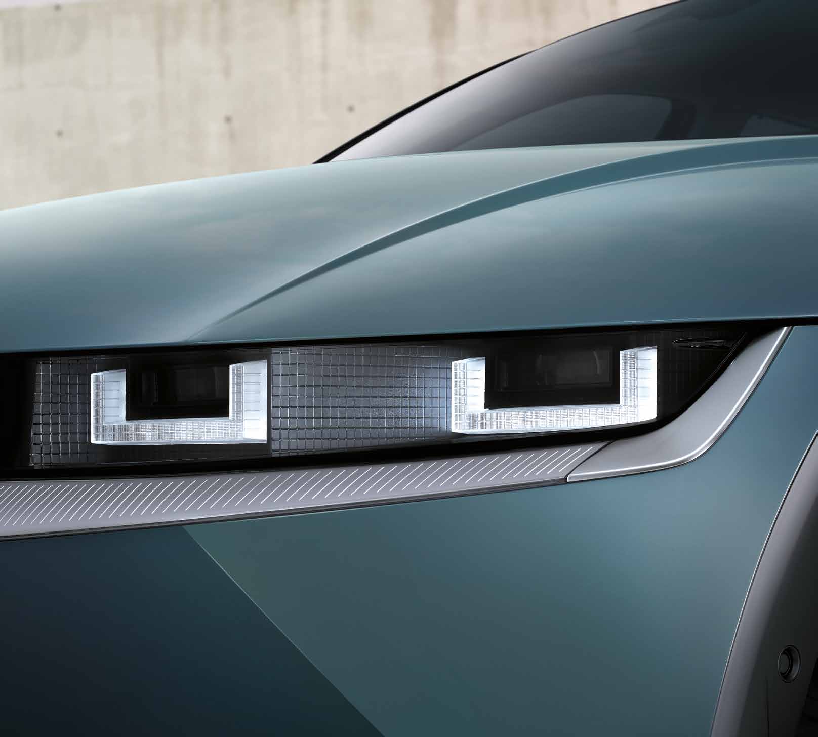 2024 아이오닉5는 독창적이고 미래지향적인 외관 디자인을 자랑합니다. 특히 LED 헤드램프와 주간주행등이 차량의 첨단 이미지를 강조하며, 깔끔한 라인이 돋보이는 디자인입니다. 오토 플러시 도어 핸들과 블랙 하이그로시 벨트라인 몰딩이 세련된 느낌을 더해줍니다.