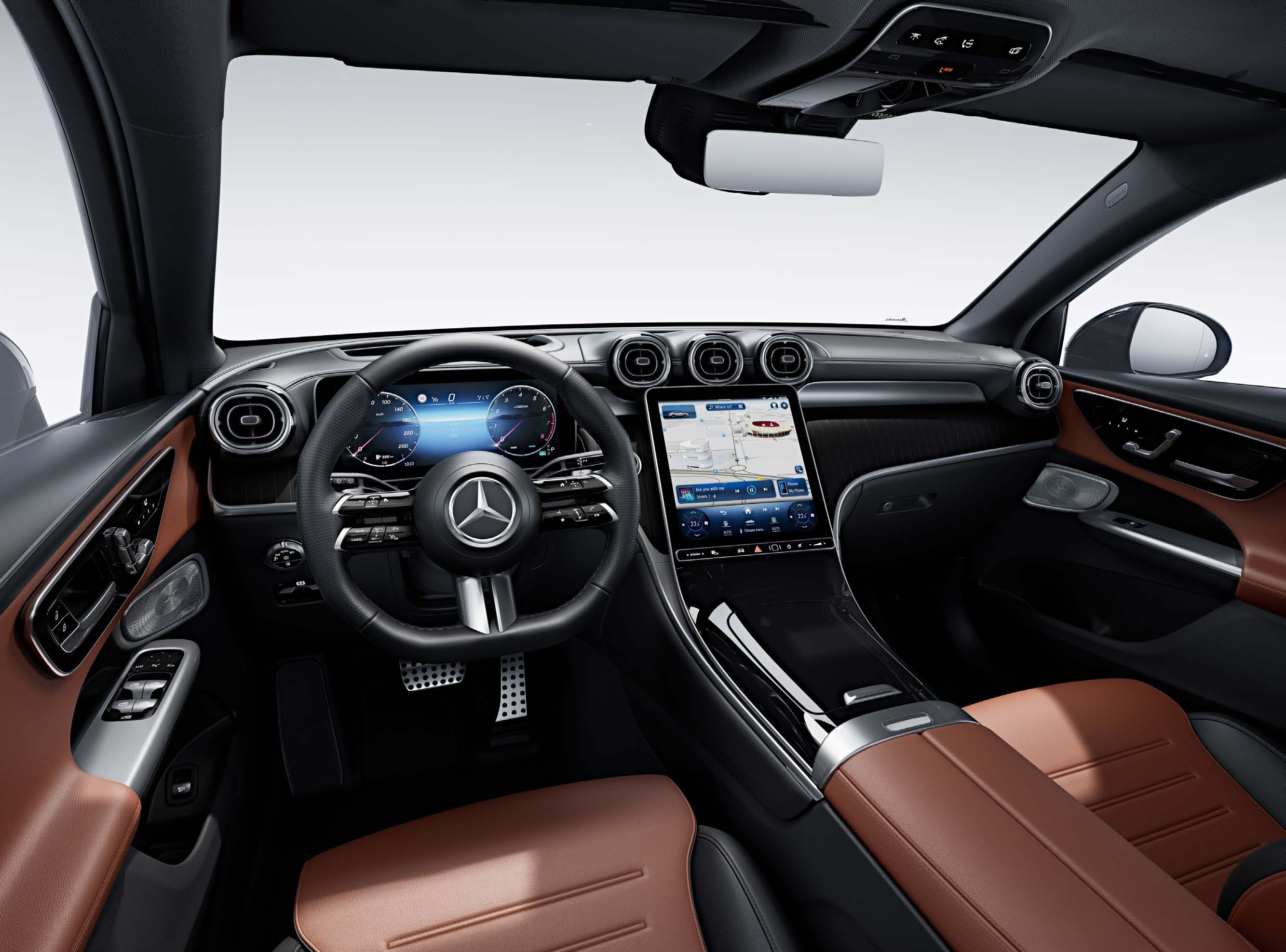 GLC 쿠페의 외관은 날렵한 쿠페 라인과 강력한 프론트 그릴로 스포티한 인상을 줍니다. 파노라마 선루프와 LED 헤드램프가 기본으로 적용되어 세련된 느낌을 강조하며, 대형 휠과 넓은 차체는 고급스러움을 더합니다.