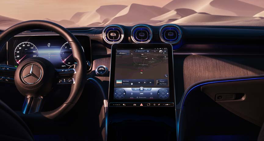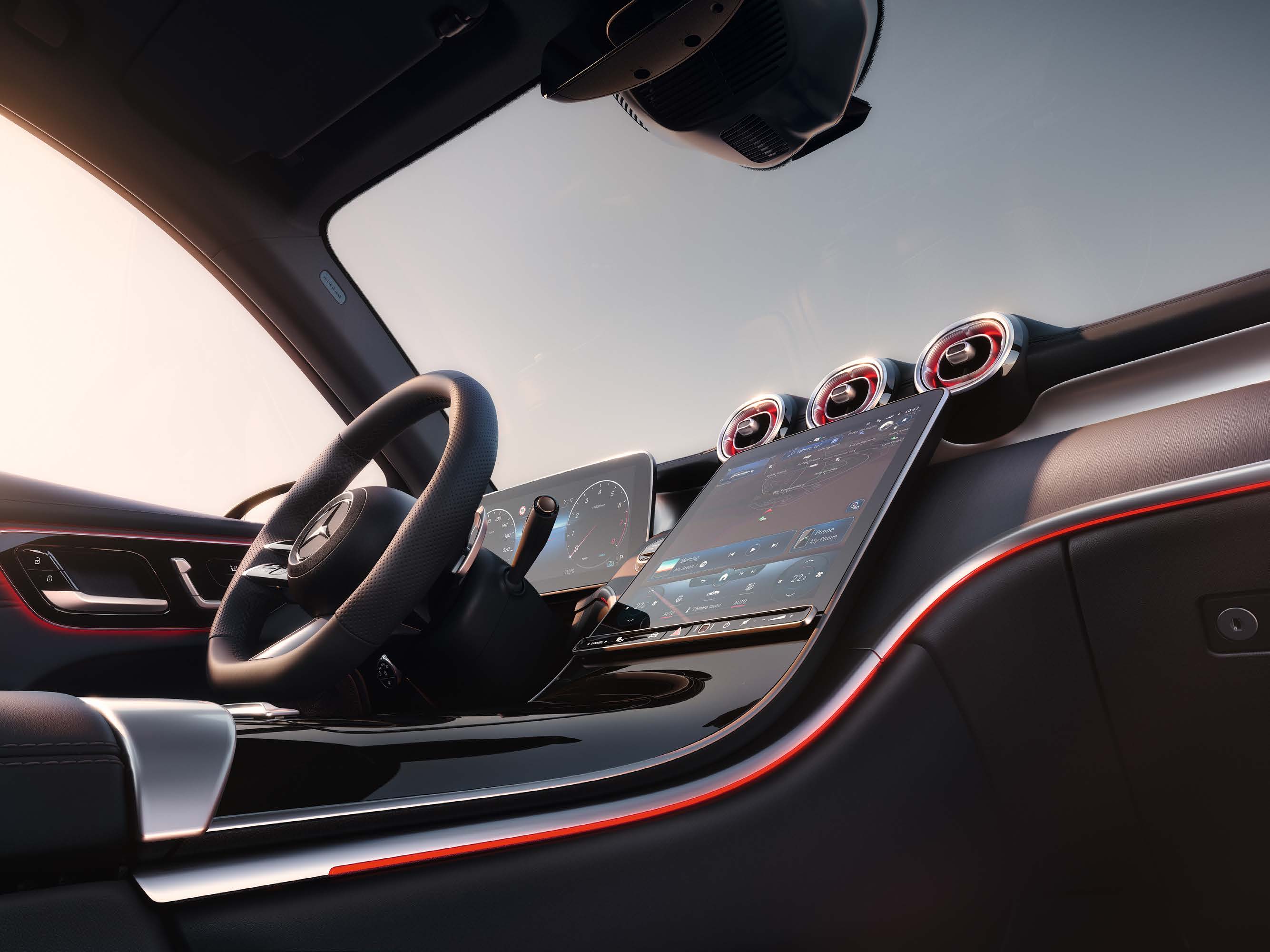 내부는 11.9인치 디지털 계기판과 Burmester 사운드 시스템이 장착되어 고급스러운 느낌을 줍니다. 가죽 시트와 다양한 조명 색상을 제공하는 엠비언트 라이트가 운전자의 편안함을 높여주며, 최신 인포테인먼트 시스템이 적용되어 사용 편의성을 극대화합니다.