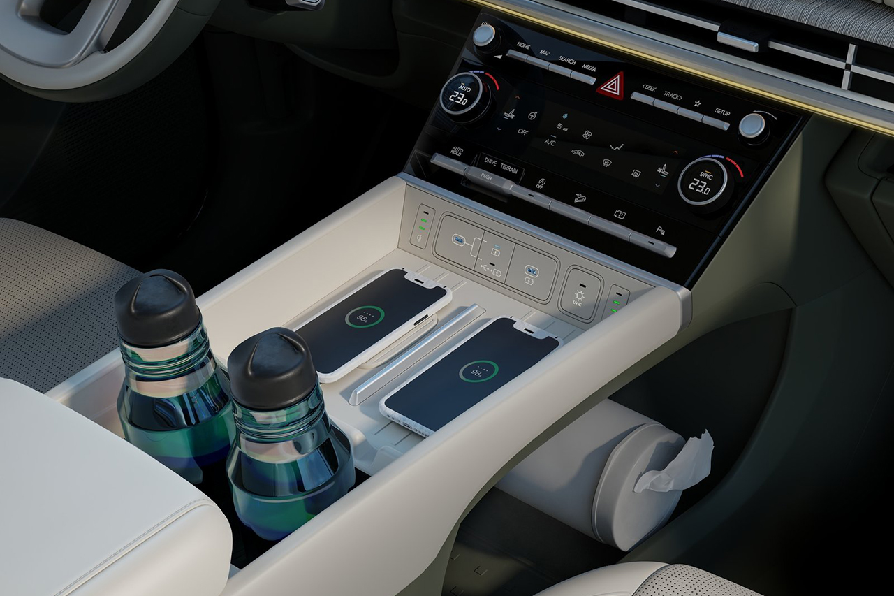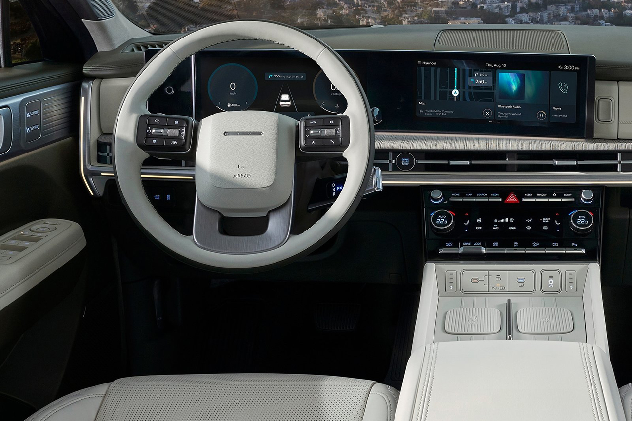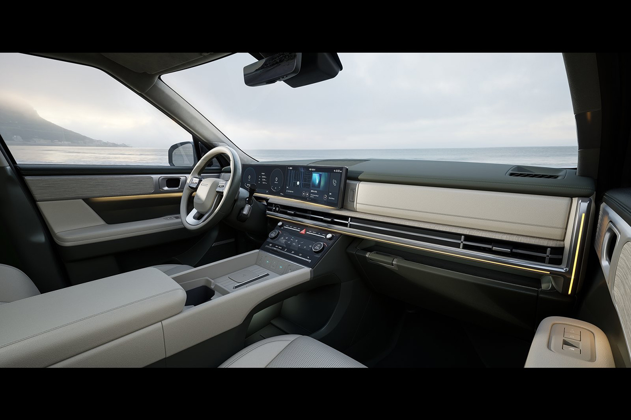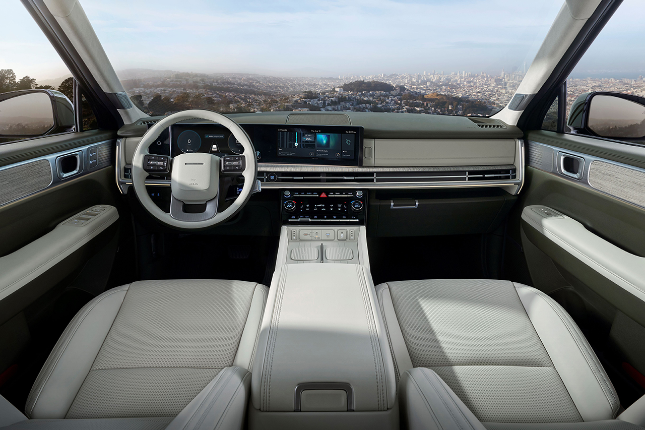 싼타페의 내부는 고급스러운 소재와 인체공학적인 설계로 구성되어 있습니다. 특히, 캘리그래피 모델은 나파가죽 시트와 스웨이드 내장재가 적용되어, 탑승객에게 최상의 편안함을 제공합니다. 12.3인치의 디지털 계기판과 터치스크린 내비게이션은 최신 기술이 반영된 편리한 주행 환경을 제공합니다.