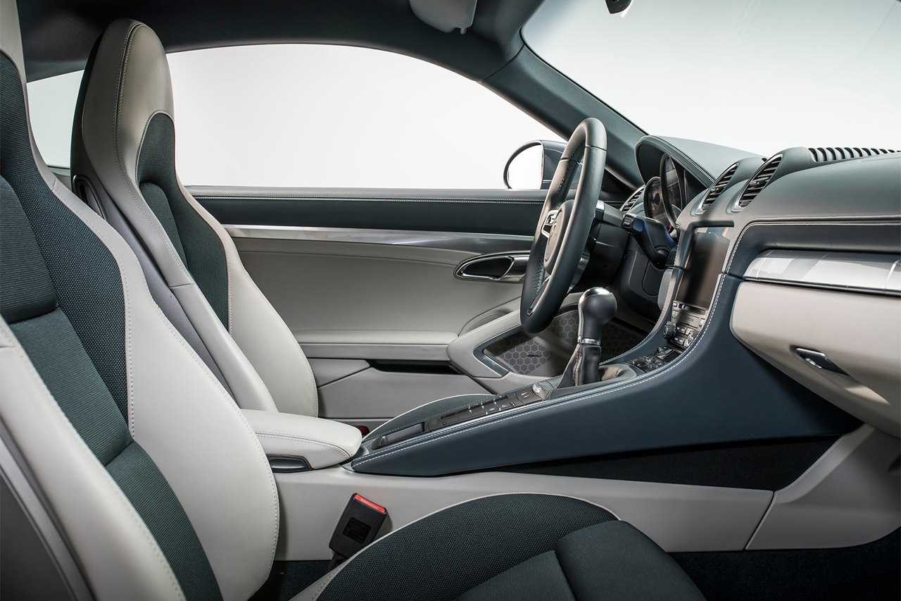 718 카이맨의 내부는 운전자를 중심으로 설계되었습니다. 가죽으로 마감된 스티어링 휠과 열선이 내장된 시트는 운전 시 편안함을 제공하며, 아날로그 계기판과 7인치 터치스크린은 클래식한 느낌과 현대적인 기능을 결합한 특징을 보여줍니다.